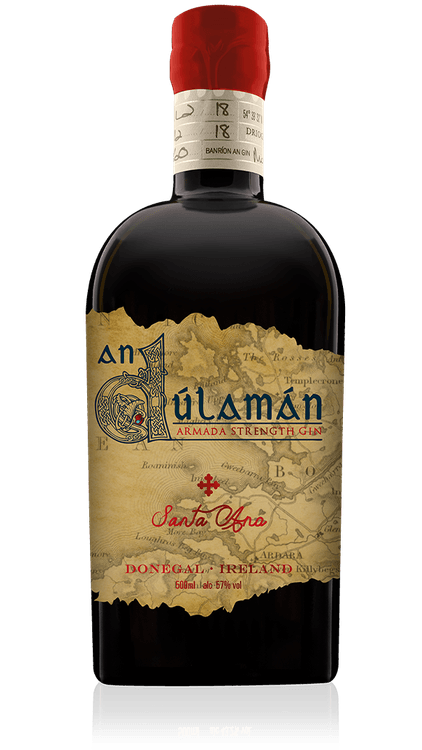 An Dúlamán Santa Ana Armada Strength Gin takes on a beautiful rose gold hue and a slight sweetness which complements the rich umami notes of An Dúlamán Gin. After aging, Santa Ana is bottled at “Armada” strength of 57% ABV.