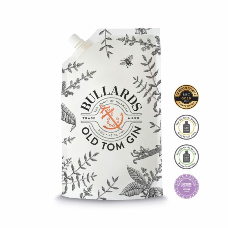 Bullards Old Tom Gin Pouch is an eco-friendly 70 cl Refill pouch, which can be posted back to Bullards for re-cycling.
