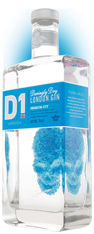 D1 London Gin was launched in 2014 by Dominic Limbrey, with the 'D' in the name referring to Dominic and the '1' referring to it being his first spirit. The gin is distilled at Langley Distillery in the Midlands and the bottle displays the 'Floral Skull' artwork created by Chinese artist Jacky Tsai.