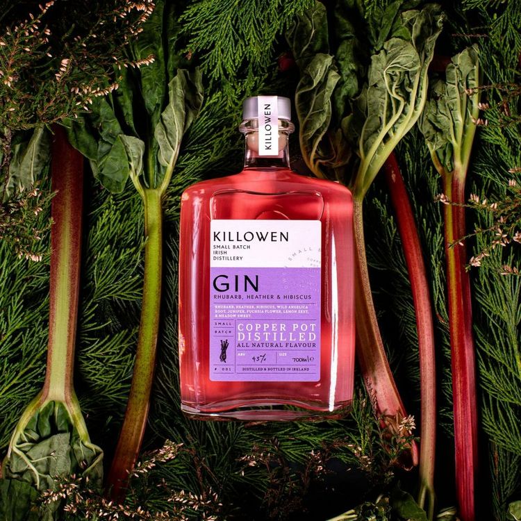 Killowen Rhubarb, Heather & Hibiscus Gin uses botanicals which shine among a base of juniper, fuchsia and meadowsweet. This gin is uniquely crafted which marries the tartness of rhubarb with the floral notes of heather and hibiscus.
