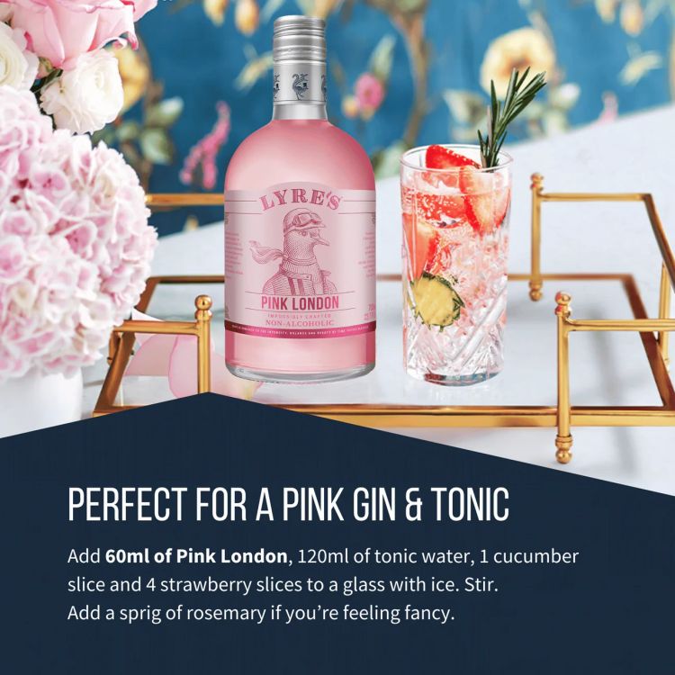 Perfect for mindful drinking, Lyre’s Pink London pairs effortlessly with premium tonic and fresh strawberries for a refreshing Pink & Tonic, or as the base for stylish alcohol-free cocktails.