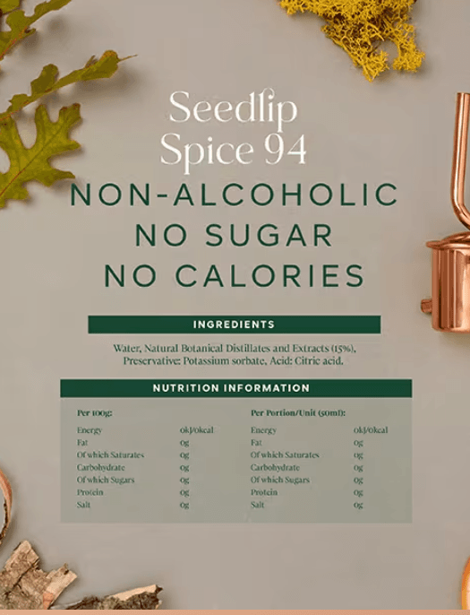 Seedlip Spice 94 is a sophisticated, alcohol-free spirit crafted to bring depth and complexity to your favourite serves, without the alcohol. Distilled with a warm blend of aromatic botanicals, it features rich notes of allspice berries and cardamom, balanced by fresh citrus peel and a lingering, earthy finish from oak and cascarilla bark.