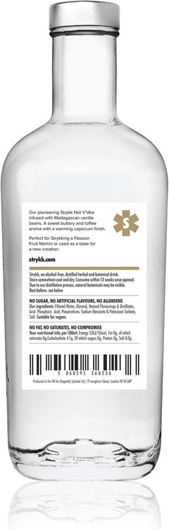 Enjoy the smooth, indulgent taste of vanilla with none of the compromise. STRYYK Not V*dka Vanilla is a bold, non-alcoholic spirit alternative crafted for those who want all the flavour and versatility of vodka, without the alcohol.