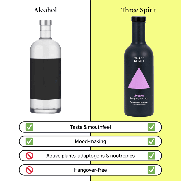 A vibrant, plant-powered alternative to spirits, Three Spirit Livener is crafted to allow non - drinkers to feel more included in social events, without a drop of alcohol. Blending aromatic botanicals, herbs and natural extracts, this bold elixir delivers a bright, bittersweet flavour profile with layers of spice and citrus.