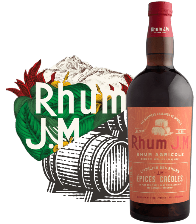 Rhum JM's Epices Creoles is a column distilled rhum agricole that has been matured for three years in a combination of toasted American oak casks and French oak casks, which impart the spice notes.