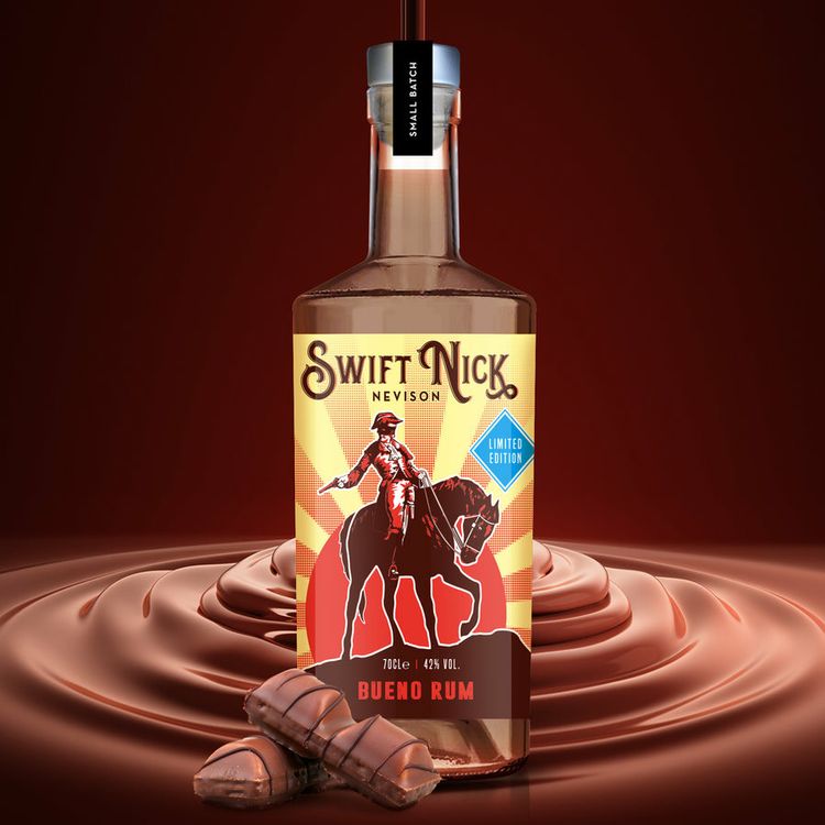 Swift Nick Bueno Rum is a rum lover's dream in a glass. This modern take on everyone's favourite chocolate bar is a smooth and warm English rum with subtle layers of dark and milk chocolate wafer, complemented by notes of vanilla and hazelnut. Crafted in small batch copper stills and casked using 100% molasses, it offers a unique and delicious flavour profile. Share this delightful rum with friends over ice and savour the tropical fruit, warming spice, and indulgent chocolate notes that make it truly exceptional.