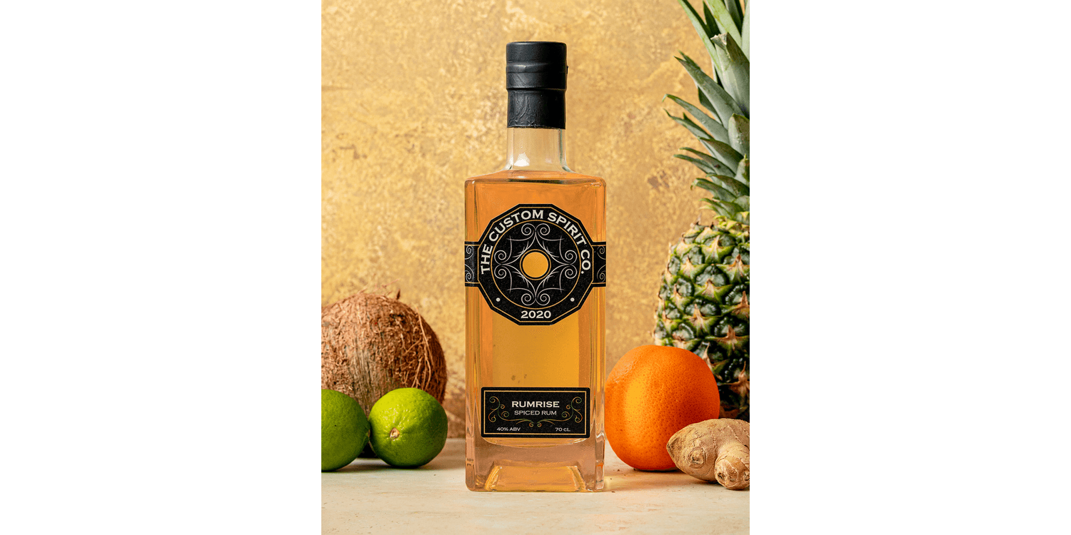 The Custom Spirit Co. Rumrise Spiced Rum is a classic tropical rum. This great rum uses a premium blend, with an unaged white rum base from The Dominica Republic and Jamaica with subtle sweet and grassy notes, enhances the vibrant infusion of pineapple coconut, ginger and citrus orange & lime.