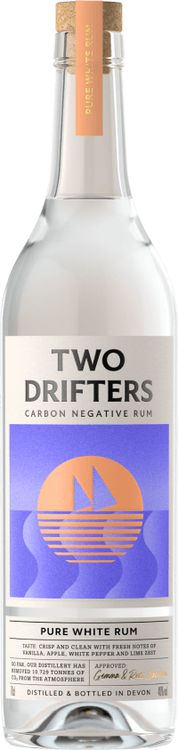 Two Drifters Pure White Rum is the ultimate white rum for those who want to enjoy a flavourful yet drier alternative to spiced rums. Combining vanilla, mixed spice and a hint of star anise, this elegant rum offers a perfect balance of sweet and savoury notes. Distilled from 100% molasses and using a blend of pot-still and column-still rums, this carbon negative rum from Two Drifters is made from scratch in Devon, UK. With a light and crisp fruity taste, it is perfect for sipping neat or mixing into your favourite cocktail.