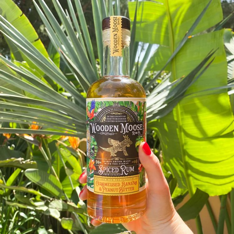 Indulgent, bold, and irresistibly smooth, Wooden Moose Caramelised Banana & Peanut Butter Spiced Rum, is a truly unique creation for those who like their spirits with a decadent twist. This small-batch spiced rum delivers a rich base of aged Caribbean rum infused with the sweet depth of caramelised banana and the creamy warmth of roasted peanut butter.