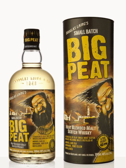 REPRESENTING ALL THAT IS ISLAY IN ONE BOTTLE, BIG PEAT BRINGS TOGETHER SOME OF OUR PREFERRED ISLAY MALTS, INCLUDING THOSE DISTILLED AT ARDBEG, BOWMORE, CAOL ILA AND PORT ELLEN DISTILLERIES SOOTY AND ASHY