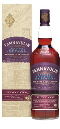 Tamnavulin Red Wine Cask, a premium single malt scotch whisky that has been aged in American oak barrels before being finished in French Cabernet Sauvignon red wine casks.